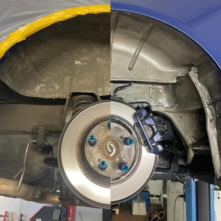 Reinigungsarbeiten an Radhäusern, Unterböden, Getrieben, Achsteilen und einzelnen Bauteilen